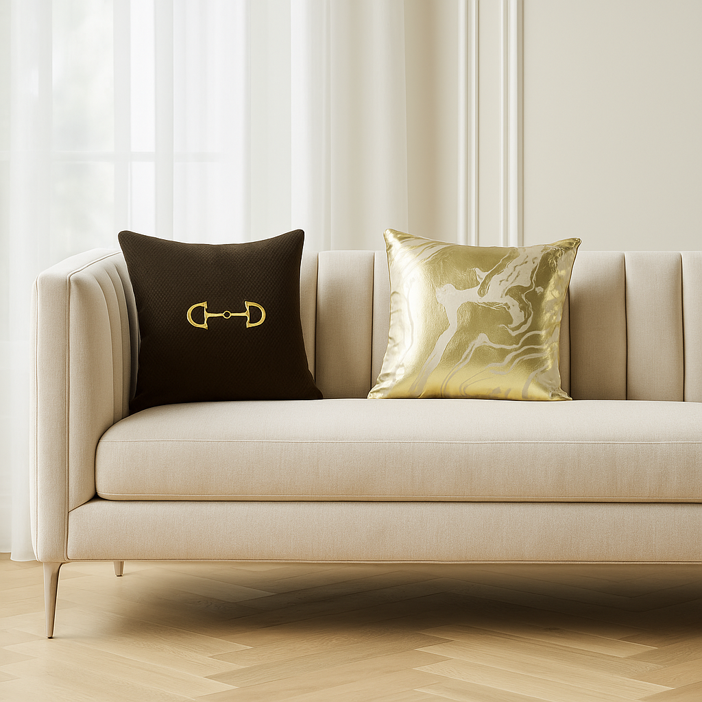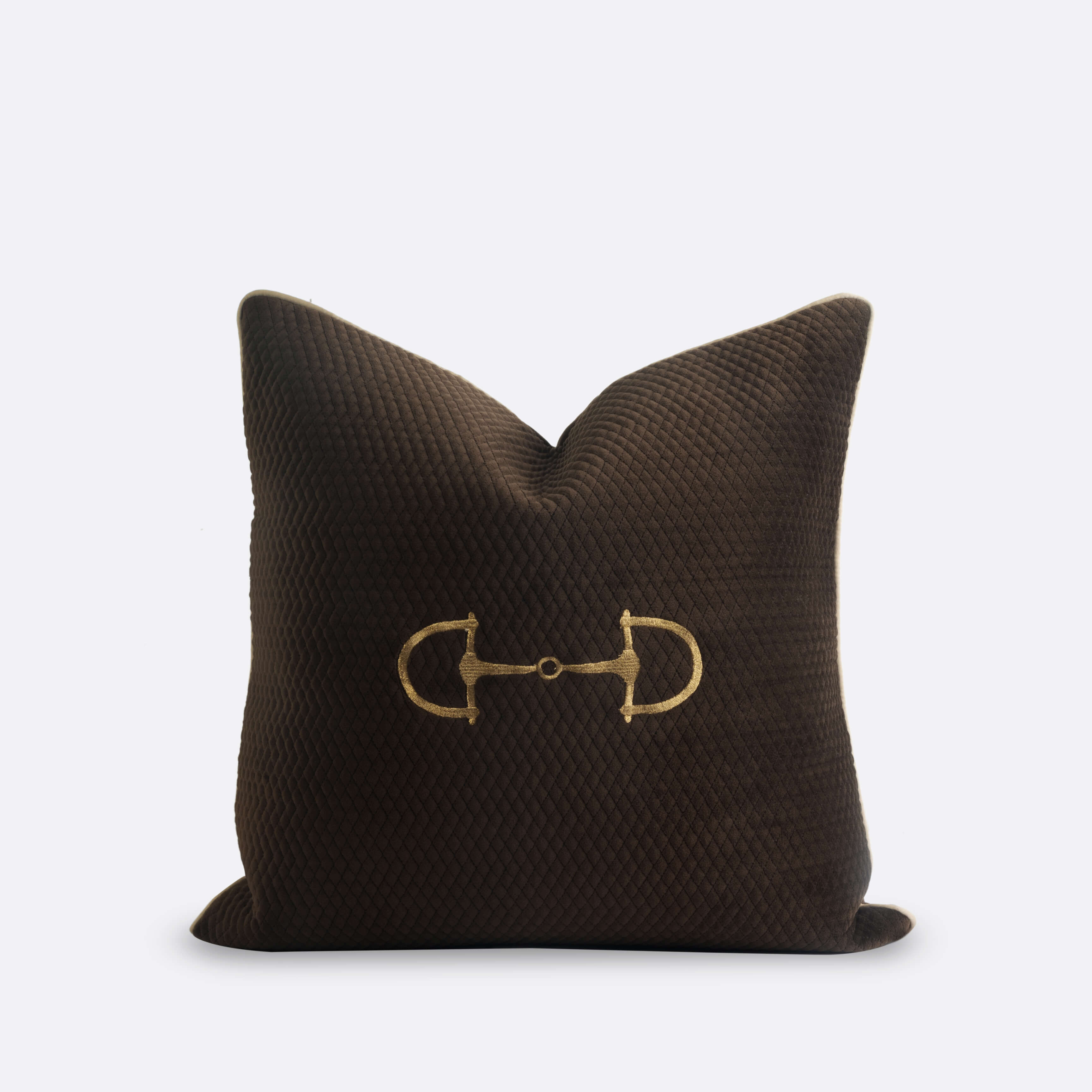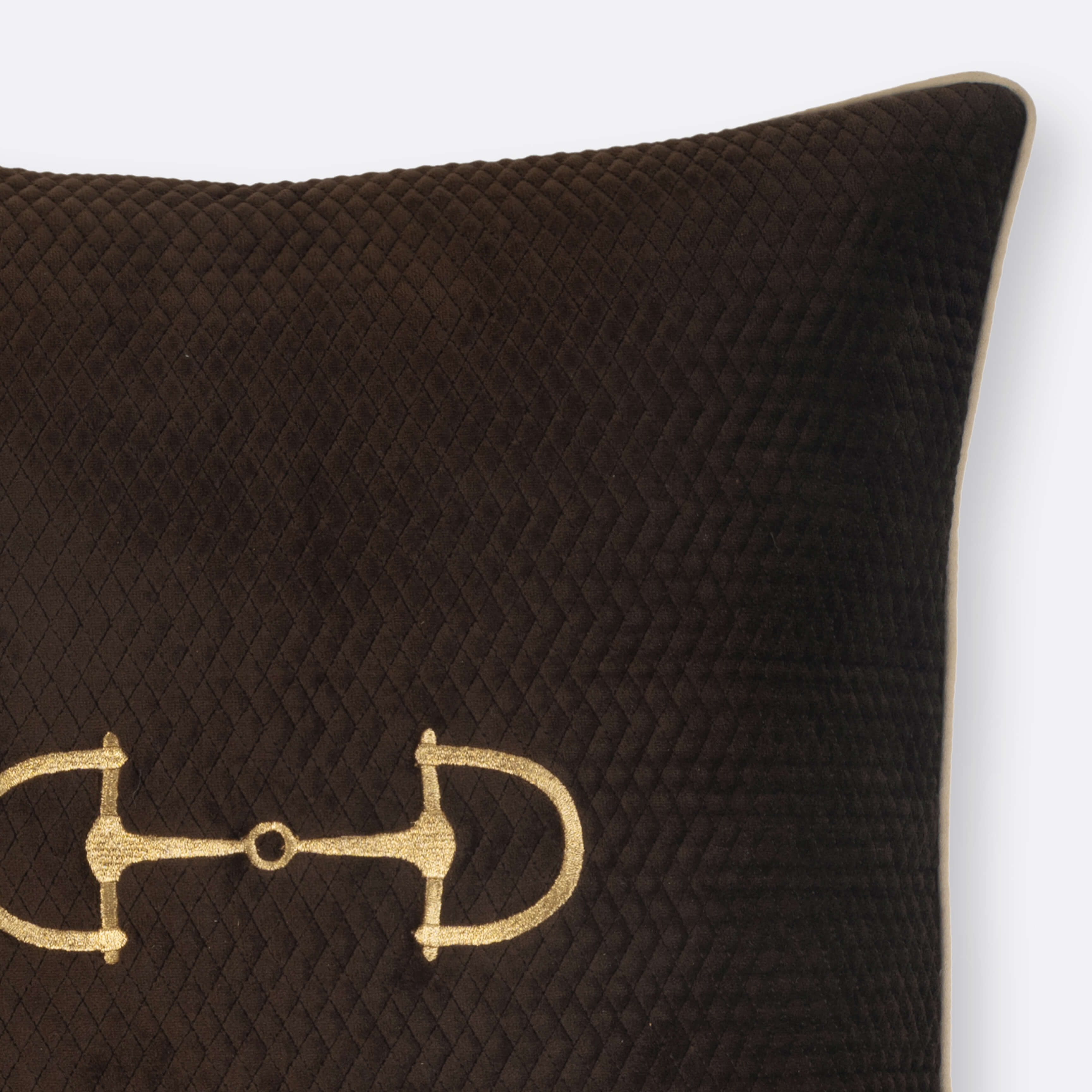 The Brown Ashton Snaffle Cushion Cover brings an equestrian charm to your space — crafted in soft velvet and embroidered with a golden snaffle motif. Its tailored elegance makes it ideal for classic or contemporary homes that love quiet luxury.