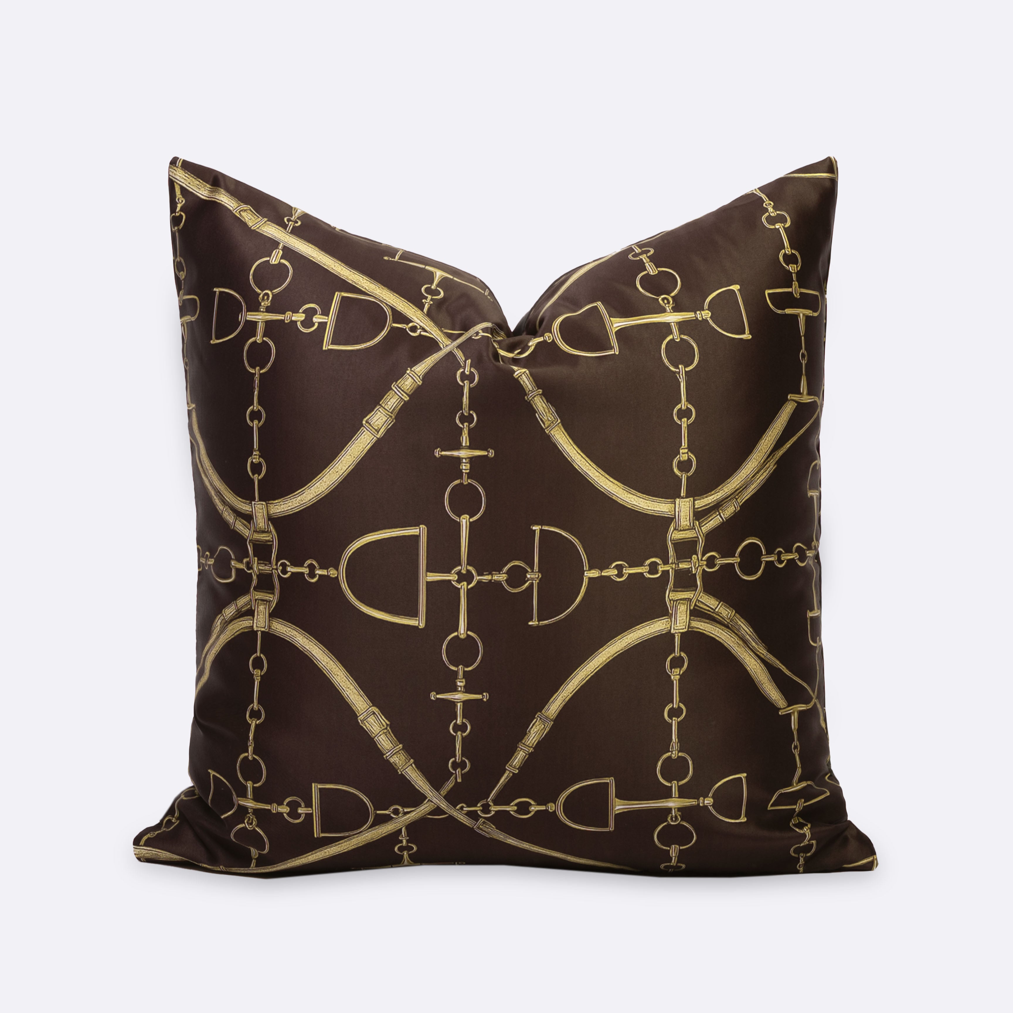 Elevate your living space with the Brown Snaffle Heritage Cushion Cover, featuring a refined equestrian-inspired print. Its elegant design blends classic olive tones with a distinctive snaffle motif, adding a touch of sophistication and timeless charm to any room. Perfect for those who appreciate heritage style and subtle luxury.