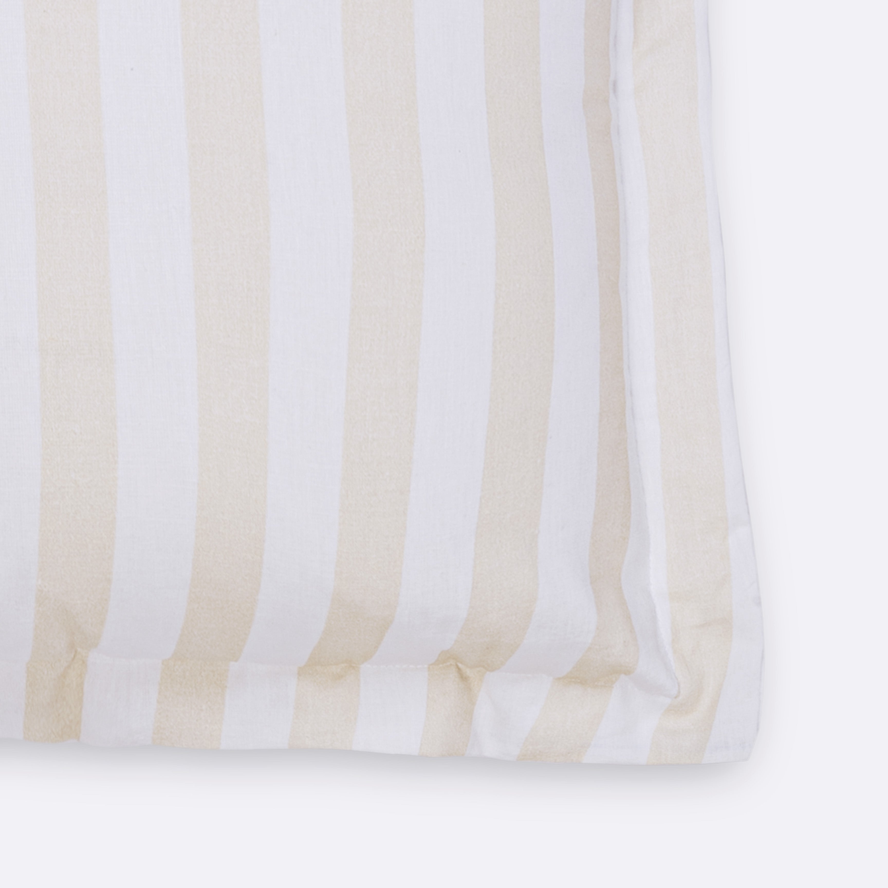 Evoking the easy charm of sunlit coastal homes, the Capri Lines Cushion Cover features classic beige and white stripes printed on soft linen. Its relaxed yet tailored look makes it a versatile addition to any living or bedroom space , crisp, breathable, and full of effortless style.