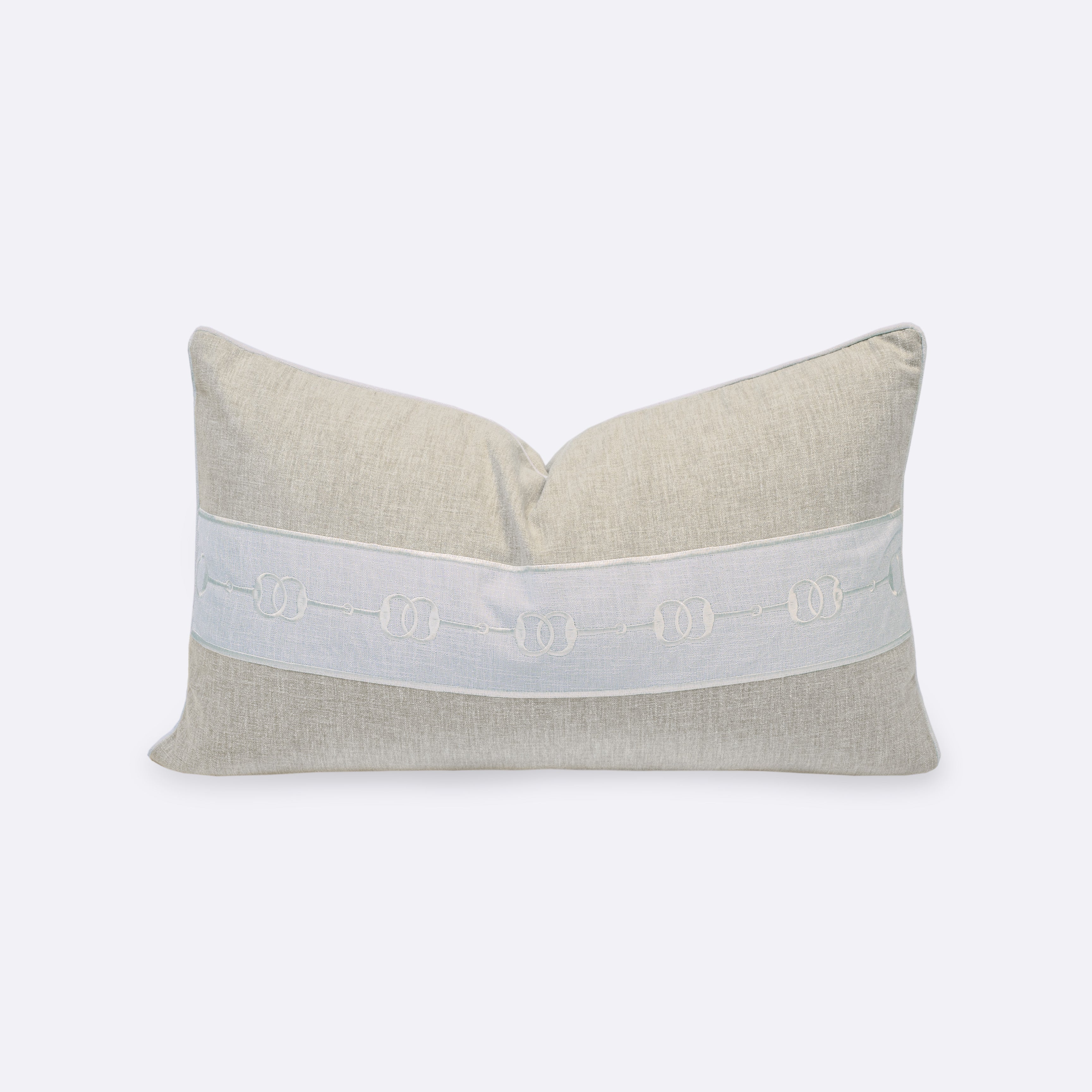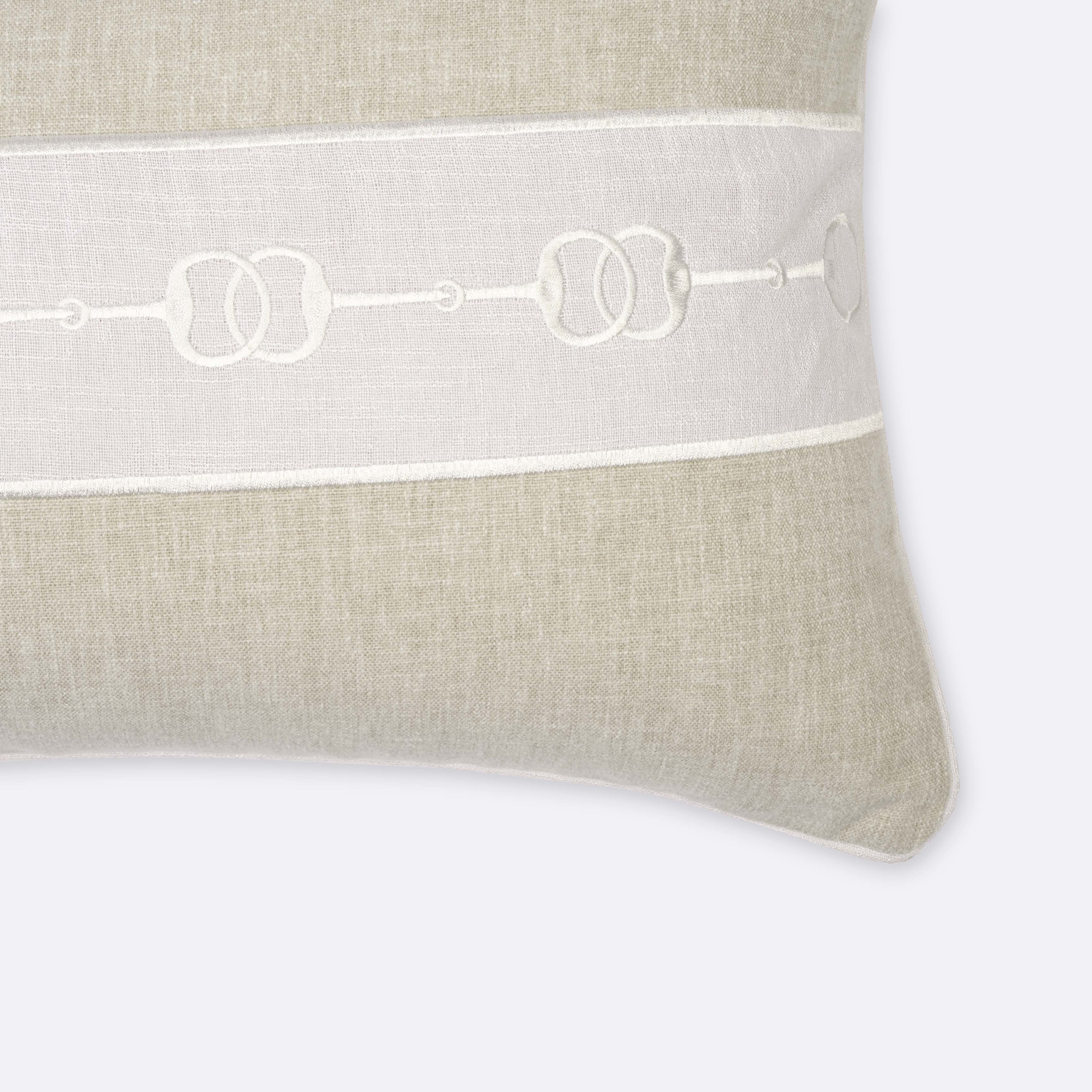 The Casa Cavallo Lumbar Cushion Cover is refined simplicity at its best — a linen-blend base accented with an embroidered snaffle-bit motif that nods to classic equestrian style. Its elongated shape makes it ideal for layering on a sofa or at the head of a bed, adding both comfort and quiet sophistication.
