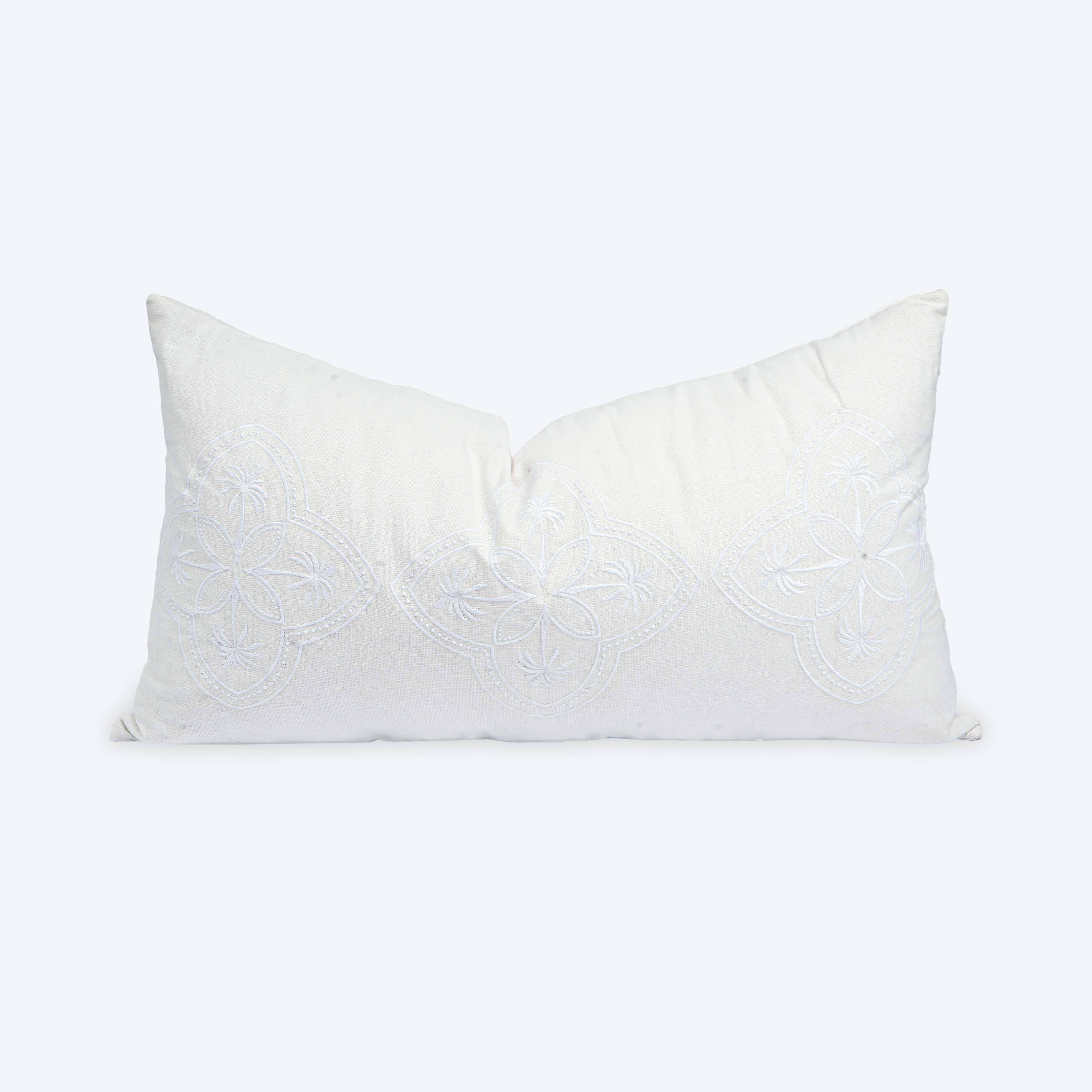Soft, airy, and beautifully textured, the Casa Palma Linen Lumbar Cushion Cover is crafted in pure linen with continuous palm-inspired embroidery. Its elongated shape makes it perfect for layering across beds or lounge seating, adding a refined coastal touch that’s effortlessly versatile.