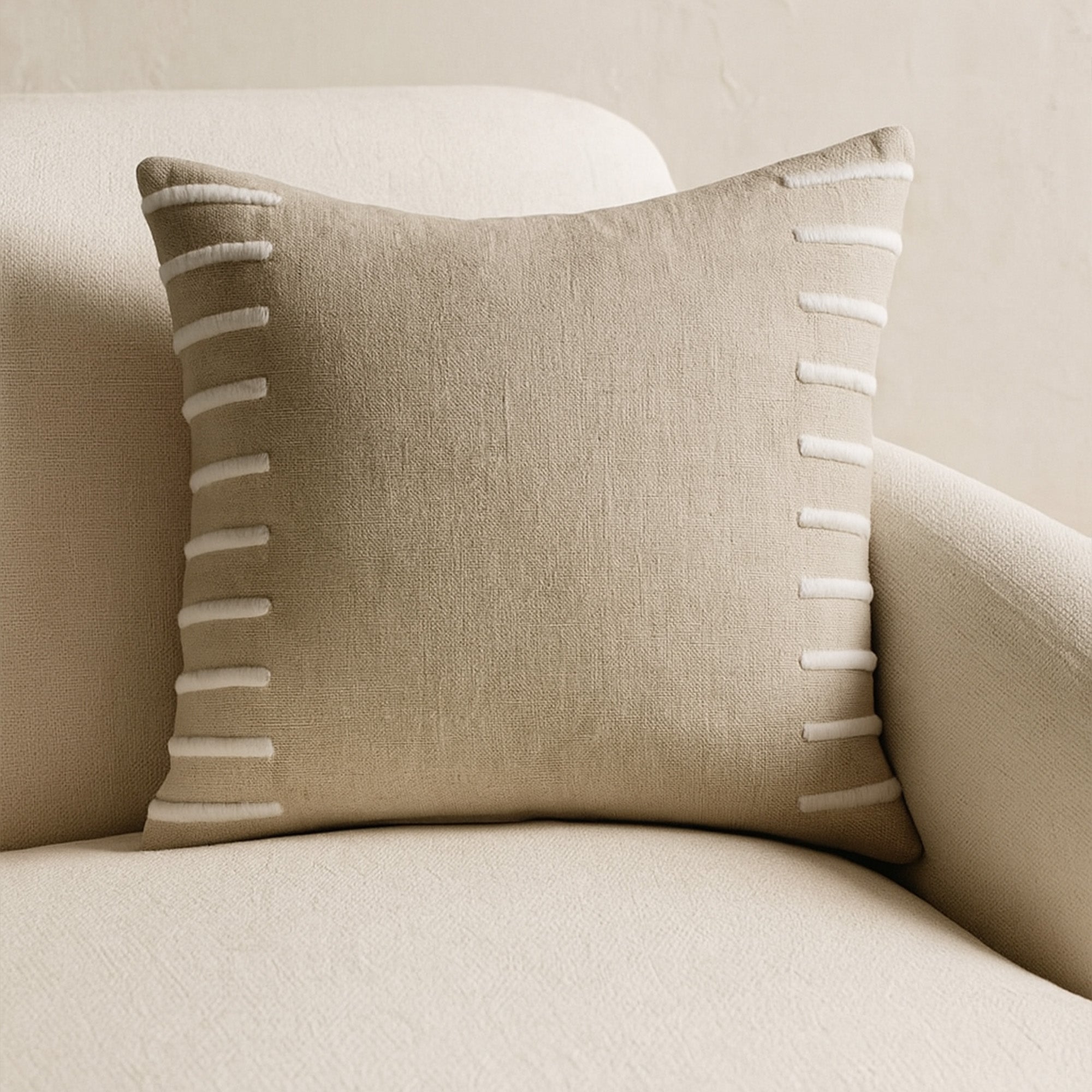 Minimal yet artisanal, the Corner Padded Cushion Cover is crafted in natural linen with softly stitched edges. Each padded corner adds structure and understated charm, making it ideal for those who love tactile simplicity.