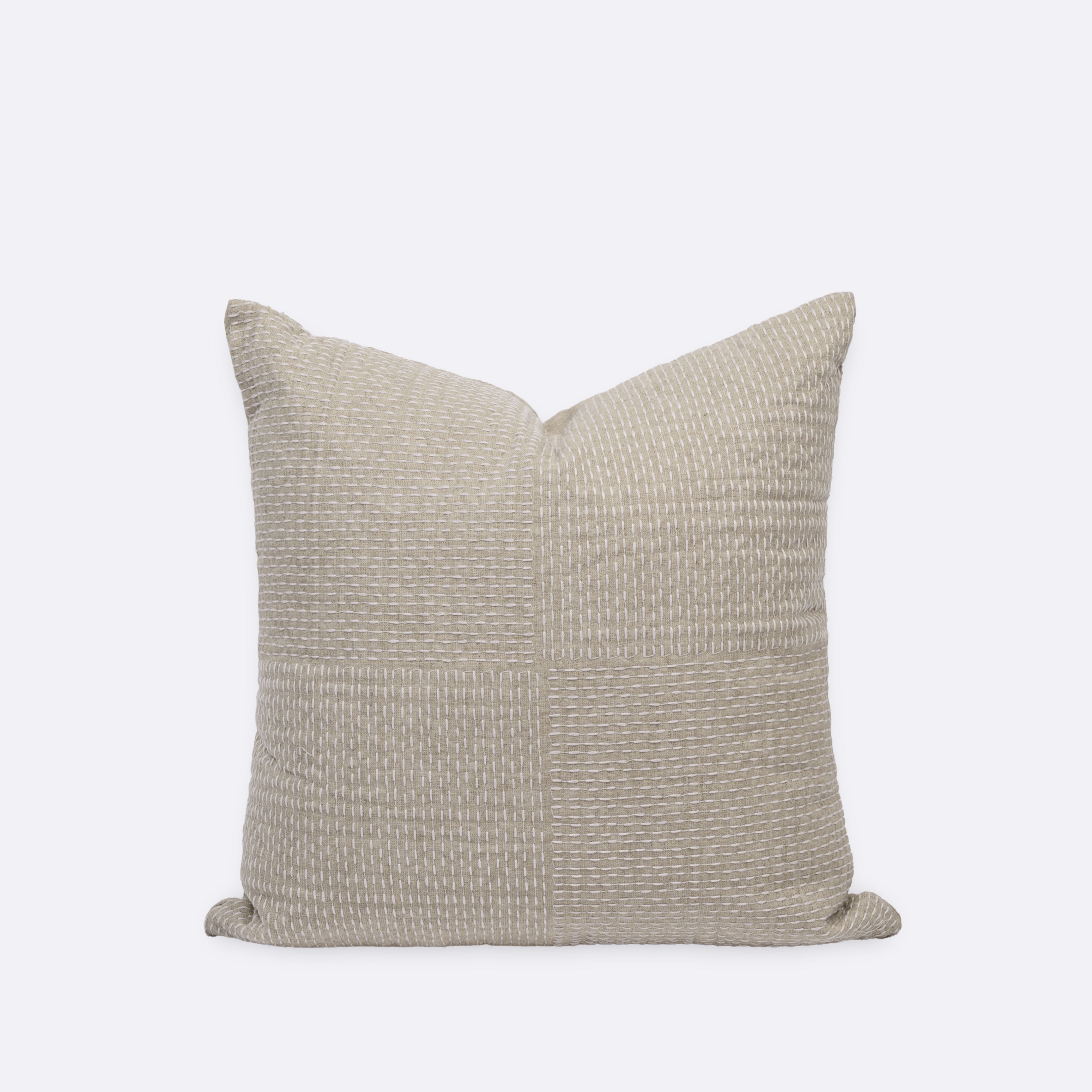 Rooted in tradition yet styled for the modern home, the Villa Kantha Linen Cushion Cover features meticulous hand-kantha stitching across a soothing sand-beige base. Each line adds texture and quiet rhythm, celebrating artisanal craftsmanship with a contemporary sensibility. Perfect for neutral interiors that love a hint of heritage.