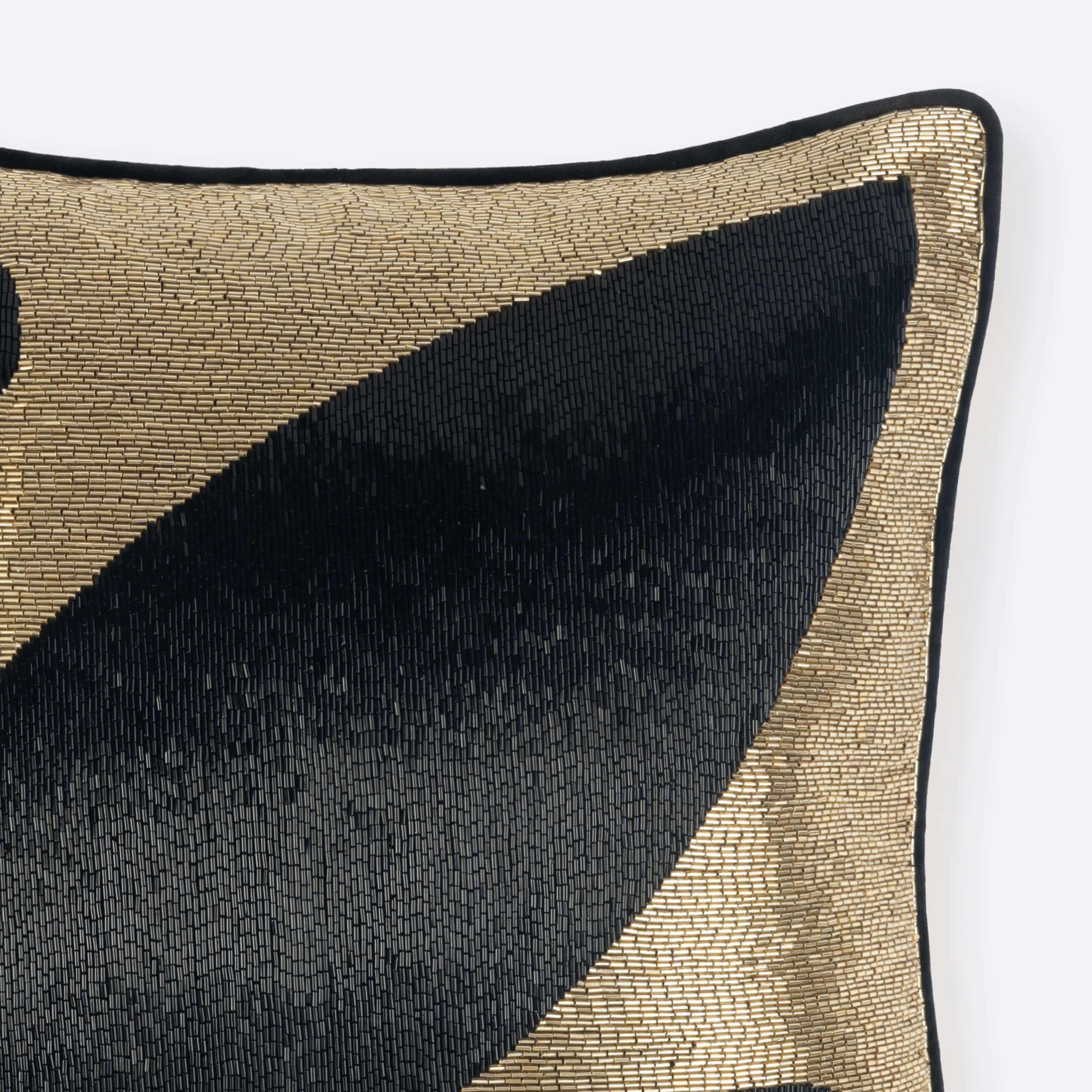 Sculptural, striking, and distinctly modern — the Cosmic Cushion Cover combines metallic gold beadwork with bold black velvet. The contrasting shapes add a sense of rhythm to your interiors, effortlessly elevating evening settings.