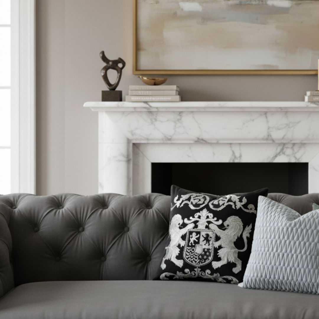 Introducing our luxurious Dynasty Cushion Cover in Black, featuring a stunning heraldic design that exudes elegance and style. Crafted from premium materials, this Cushion cover offers unparalleled comfort and is the perfect addition to any sophisticated home decor. Elevate your living space with this stylish and timeless piece. Fabric - Italian Velvet Dry Clean Only Filler not Included Exclusive to The Pillow Company Please note that colours on the actual product may vary slightly.