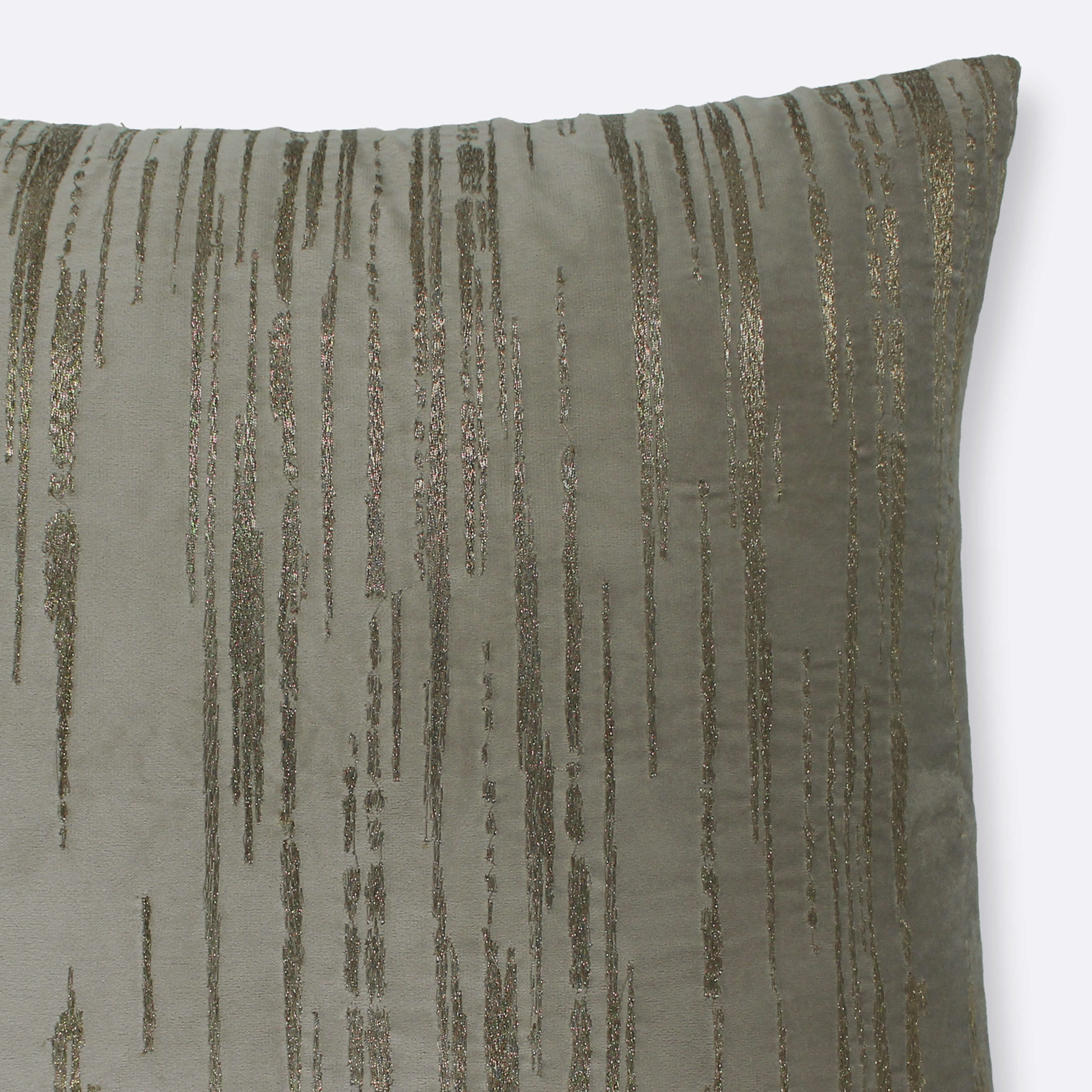 The Beige Gilted Cushion Cover shimmers subtly with fine metallic threadwork running vertically across plush velvet. Its modern yet organic pattern catches the light softly, lending elegance to both day and evening interiors.