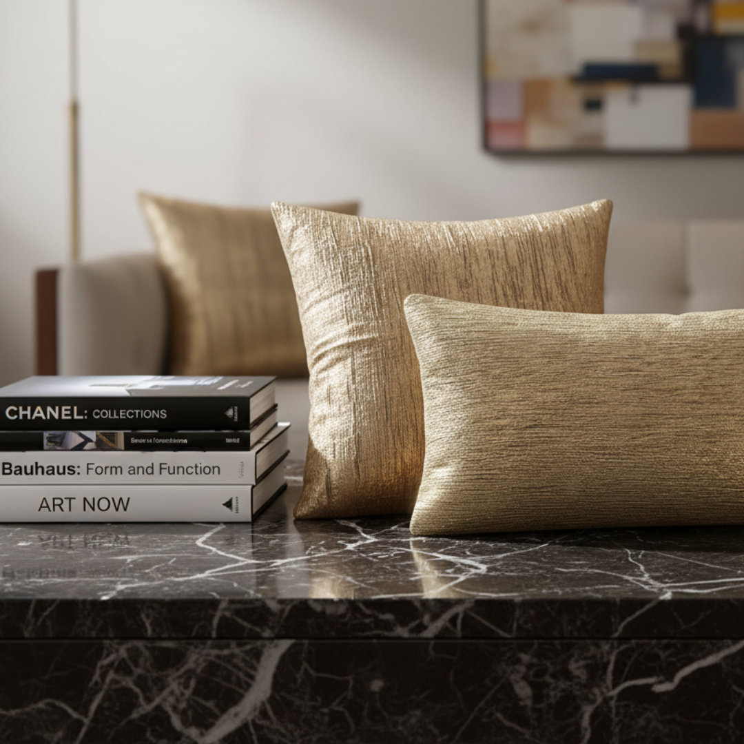 lluminate your space with the subtle radiance of our Gold Shimmer Cushion Cover. Featuring a luxe metallic finish and soft texture, this cushion cover is the perfect accent to add a touch of glamour to your decor.