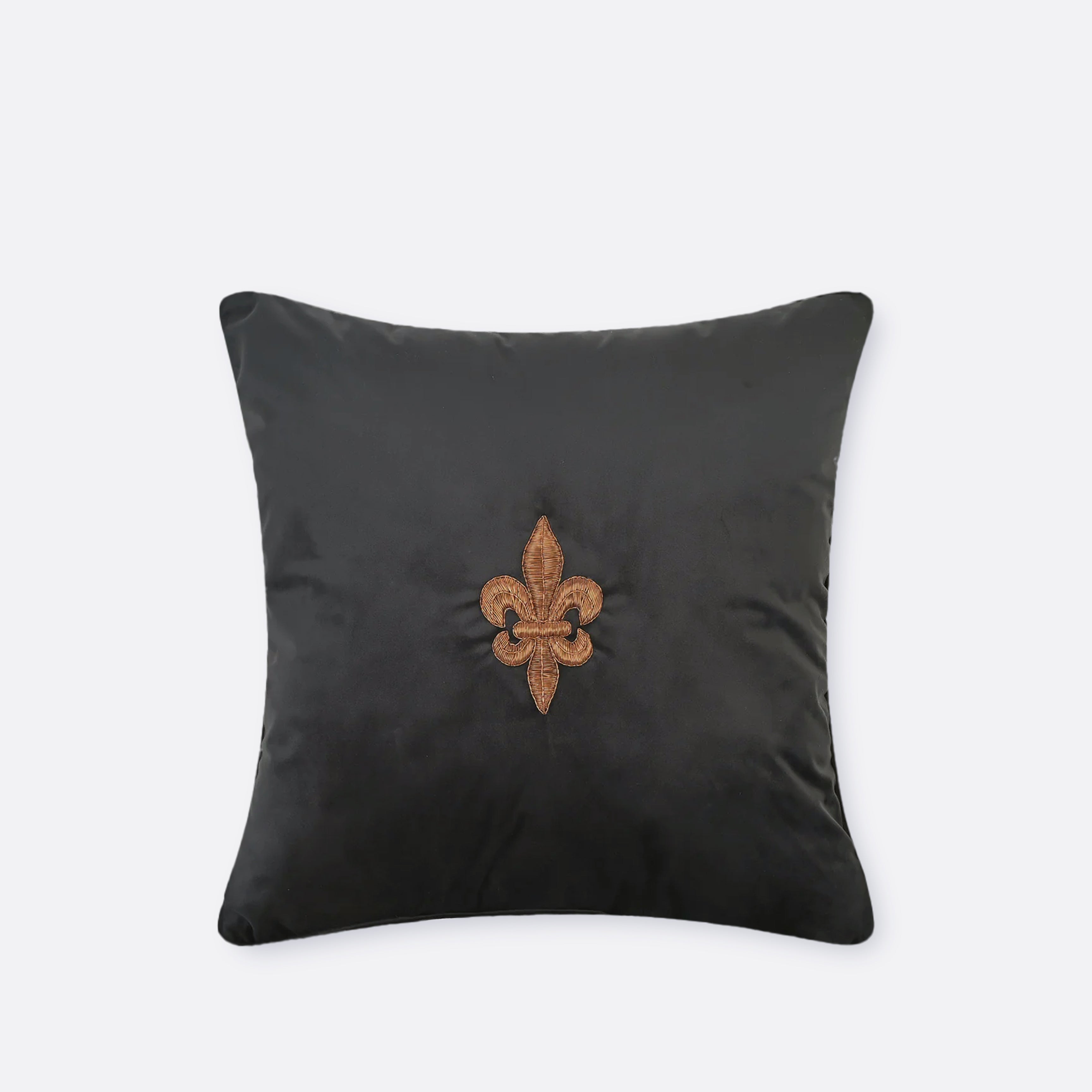Embodying quiet power and refinement, the Black Imperial Fleur Cushion Cover showcases a bronze Fleur-de-Lis embroidered over soft velvet. Symbolic and striking, it’s a nod to European heritage design.