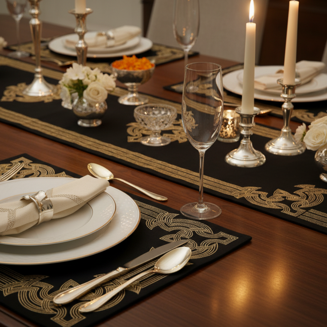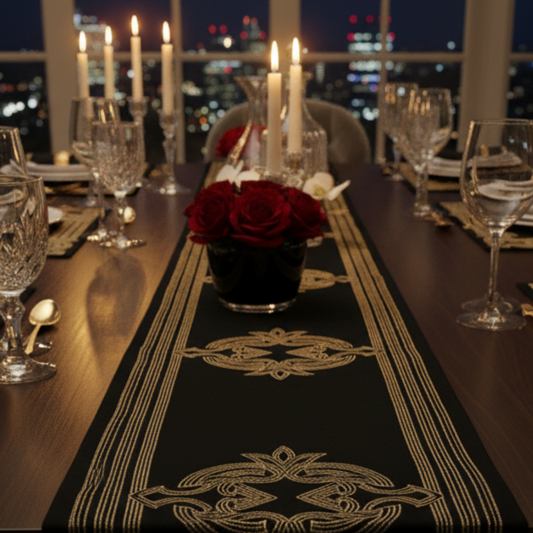 Experience the epitome of sleek sophistication with our Ebonite Regalia Black Runners. This luxury home decor item is an absolute show stopper, crafted with top tier materials that add a statement to any room it adorns. Bask in the rich ambiance it creates, turning your space into a royal sanctum of style and grandeur. Nothing embodies elegance quite like our Regents Ebonite Regalia Black Runners. Fabric - Linen Dry Clean Only Exclusive to The Pillow Company Please note that colours on the actual product may vary slightly.