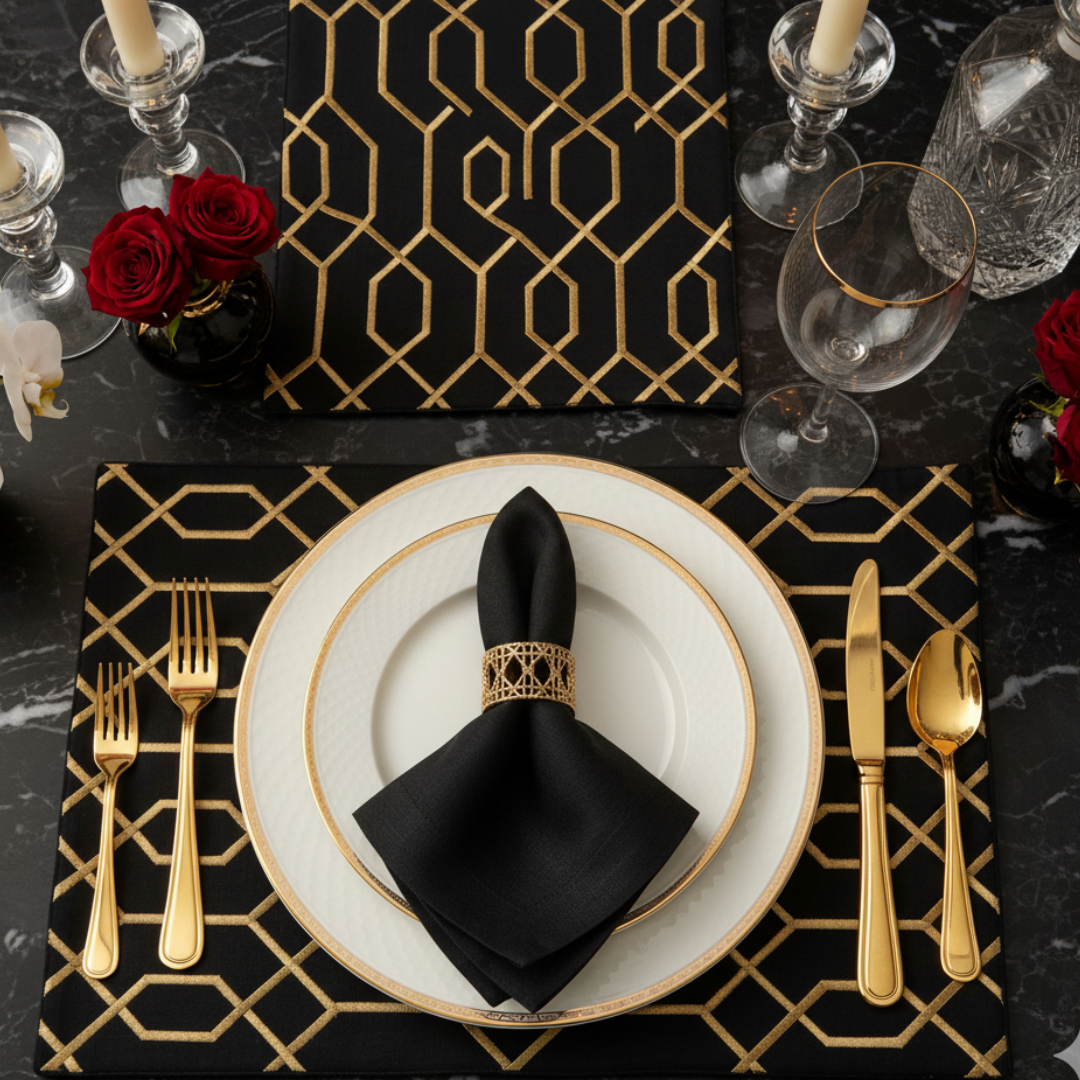 Elevate your table settings with our Black Gatsby Table Runner. This luxurious black table runner adds a touch of sophistication and elegance to any tablescape. Made with high-quality materials, it adds a sleek and polished touch to your dining experience.