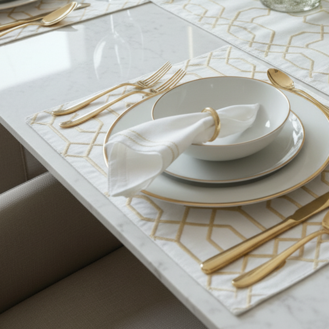 Crisp and quietly polished, the Gatsby White Placemat brings a refined stillness to your table. With its clean tailoring and soft sheen, it’s designed to anchor both everyday meals and elevated hosting moments with effortless grace.