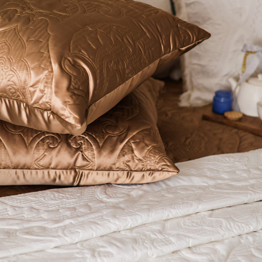 The Gold Regal Euro Sham brings grandeur and glow to the bedroom — a finishing touch that instantly elevates your bed into a statement of refined luxury. Designed to pair with the Gold Regal Bedspread, it’s crafted in smooth sateen with a soft, lustrous finish that catches light beautifully.