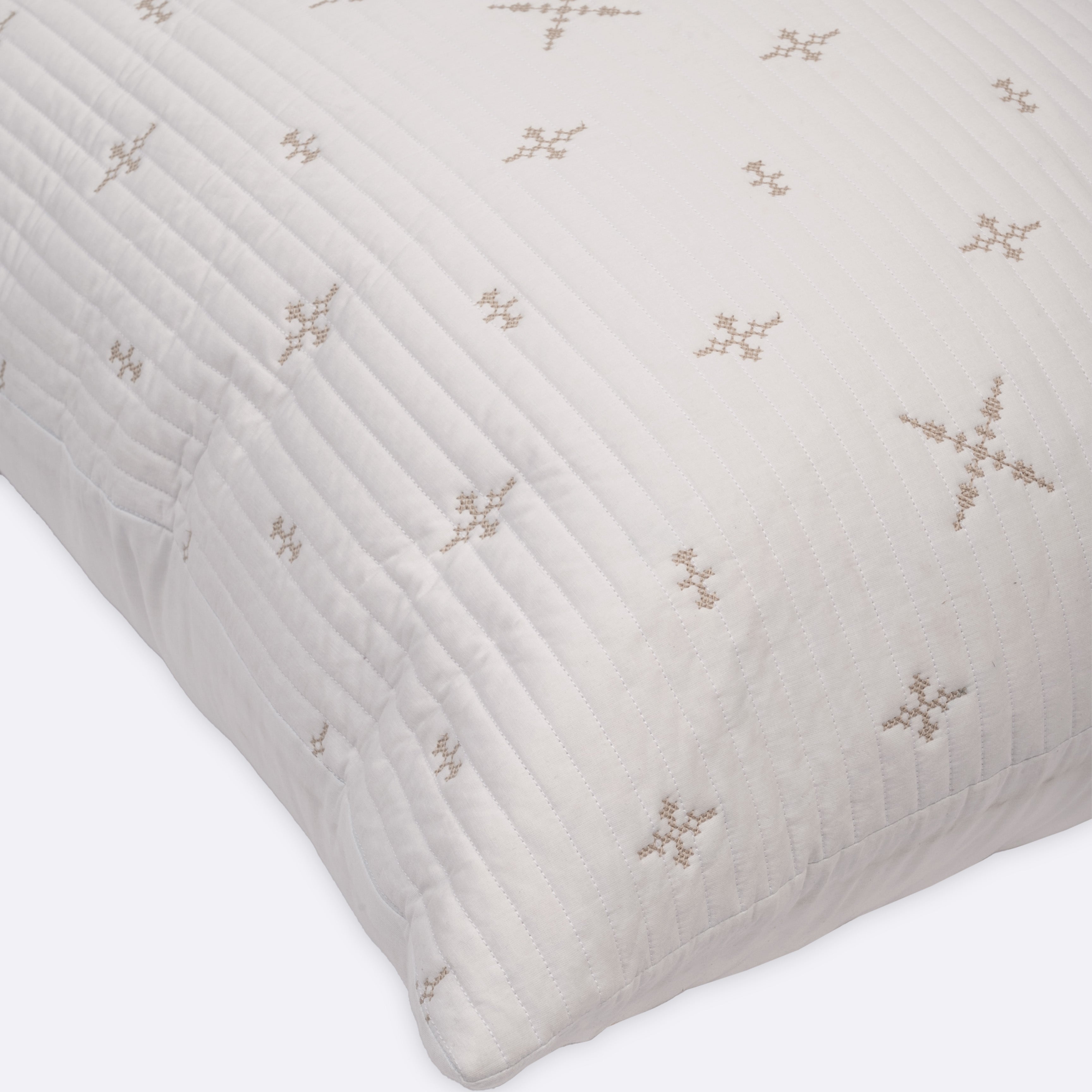 Complete the calm of your bedroom with the Medina Euro Sham — designed as the perfect companion to the Medina Bedspread. Crafted in the same soft off-white cotton blend with kantha-inspired quilting, it carries the same serene texture and artisanal detail across your bedscape.