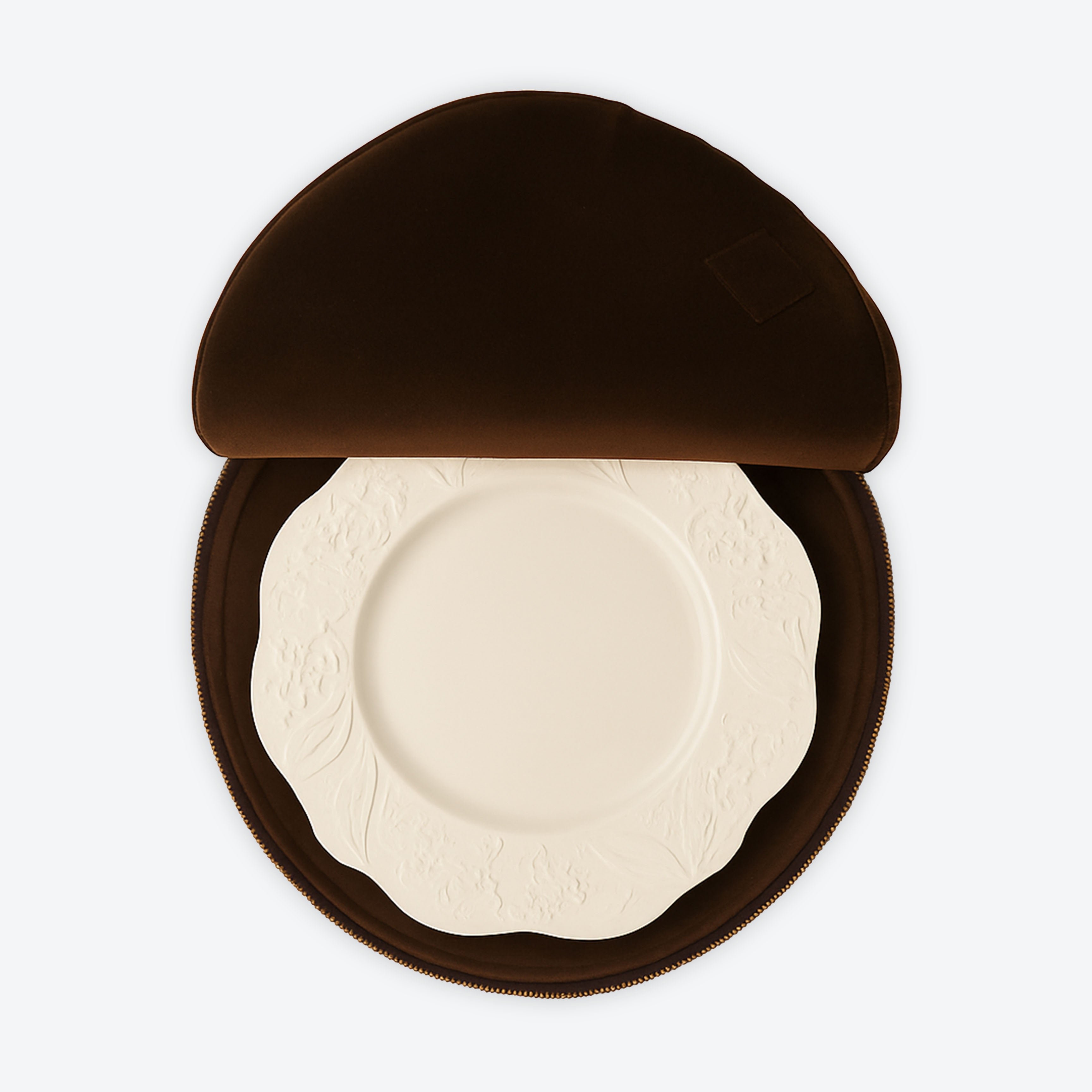 The Luxe Platter Cover features a quilted velvet exterior and a smooth satin-finish interior, offering both durability and soft-touch care. A transparent top window provides visibility, while the dual zipper system ensures effortless access when needed.