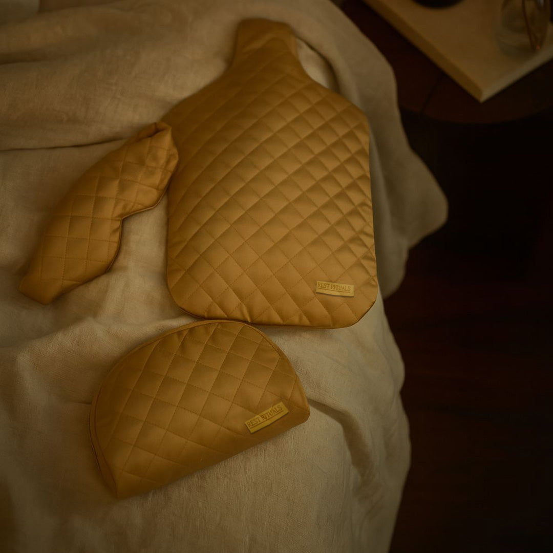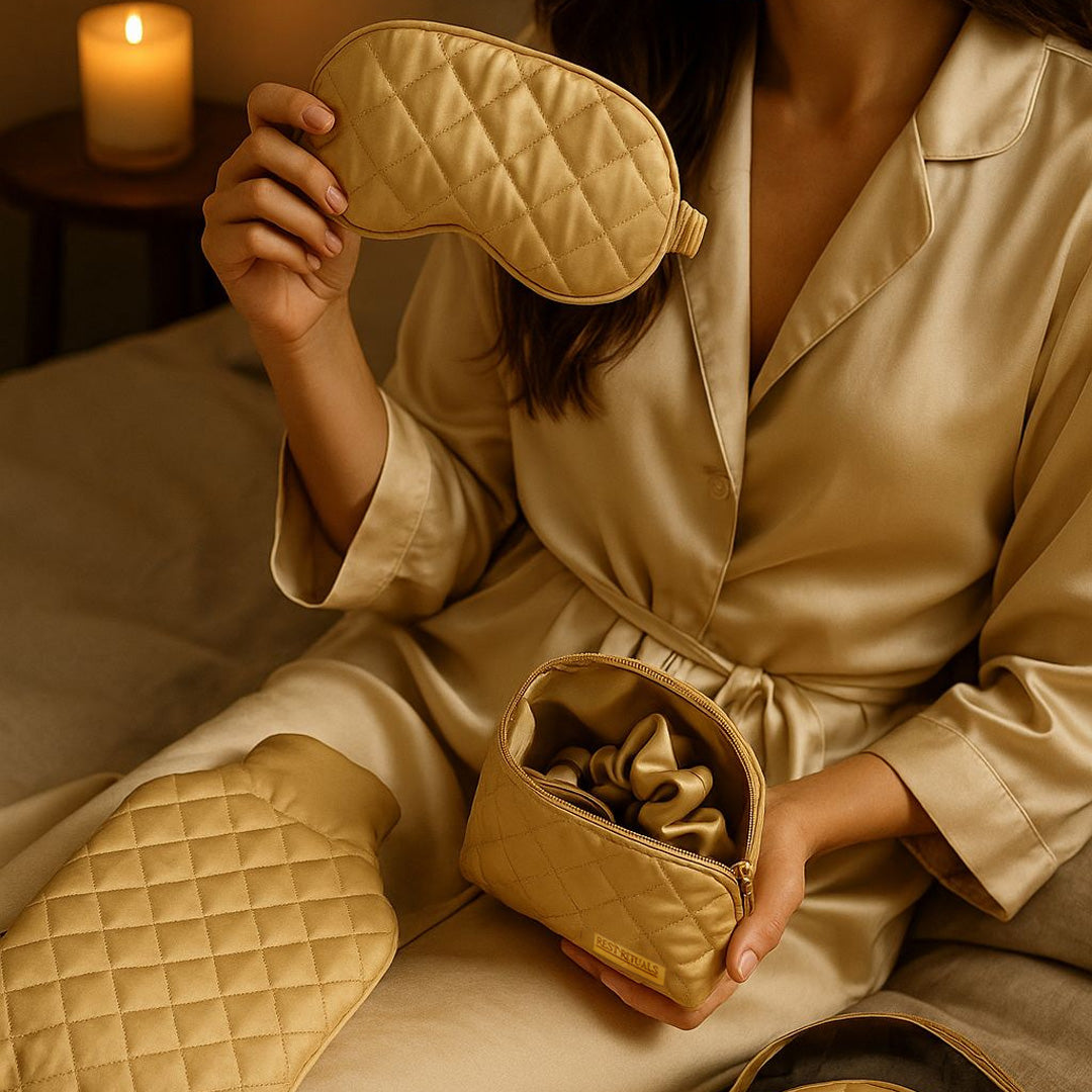 The Turndown Set is your invitation to slow down — a trio of thoughtful pieces designed to bring softness and serenity to your evening rhythm. Crafted in our signature pearl-toned satin and velvet, each element is refined yet tactile, made to be felt more than seen. Whether kept bedside or packed for travel, it offers a moment of care in physical form.