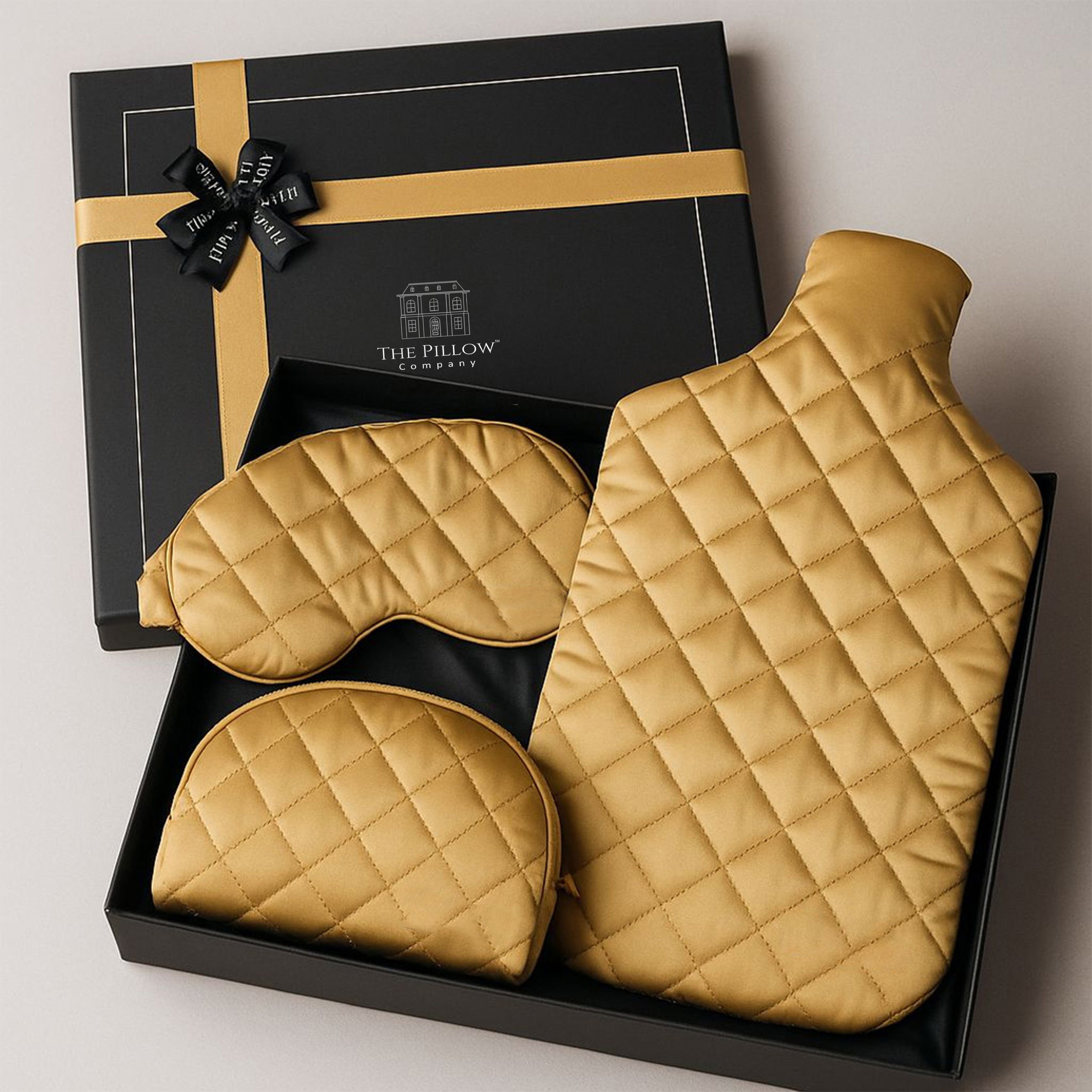 • Hot Water Bottle Cover – Ruched velvet with satin lining and drawstring closure (bottle not included).