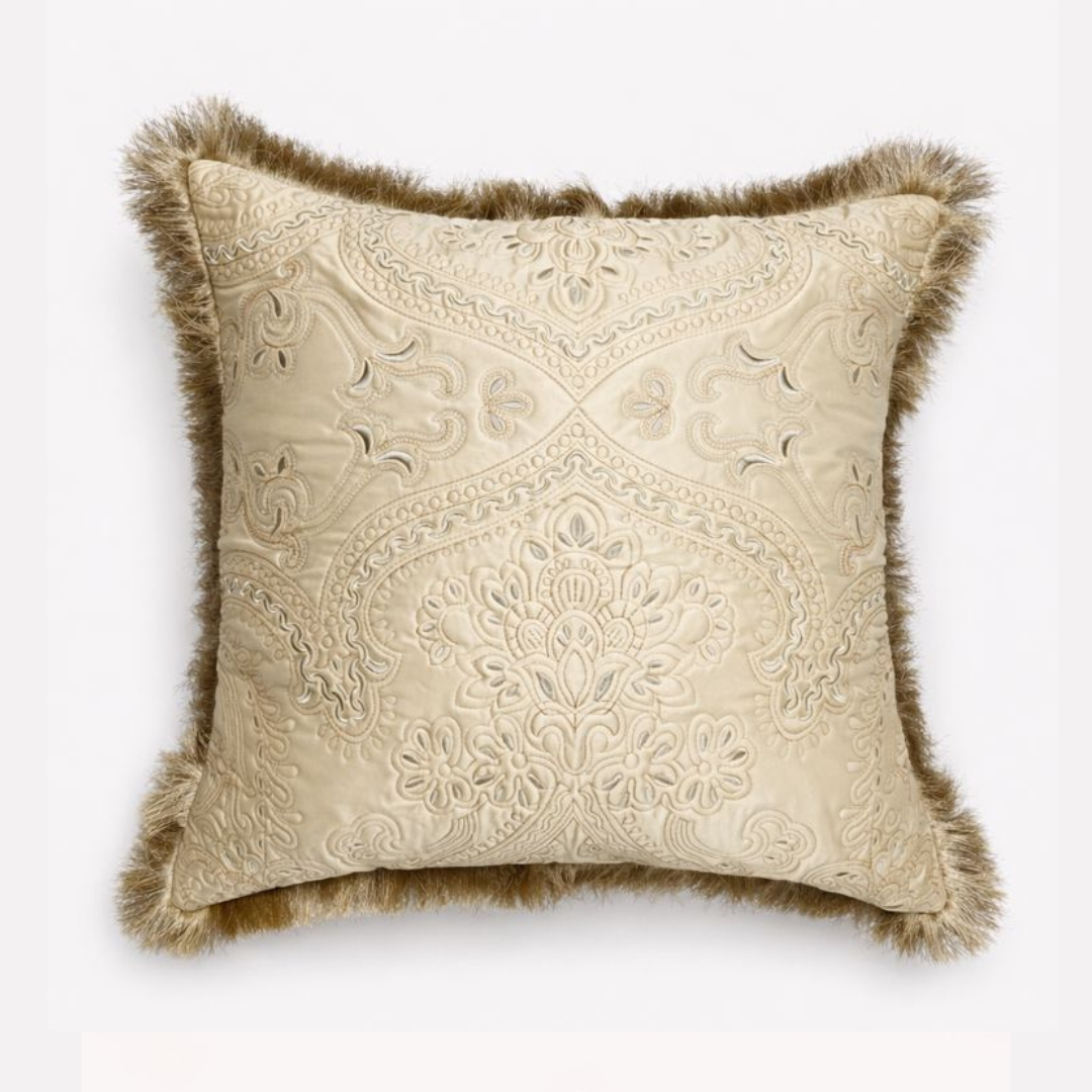 Ideal for formal living rooms, elegant bedrooms, or styled seating areas, this cushion works best where detail and texture are meant to be noticed.