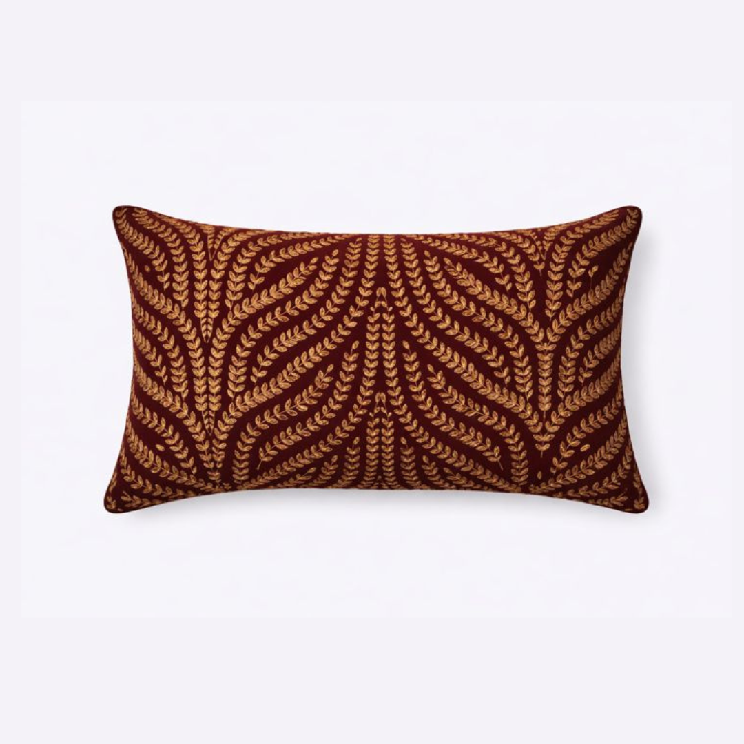 Rich, rhythmic, and classically inspired — the Red Elysian Vines Lumbar Cushion Cover brings ornamental depth to refined interiors. Crafted in plush velvet, its flowing vine motif repeats in a graceful cadence, creating movement and texture that feels timeless rather than ornate. The deep red base adds warmth and drama, making this cushion a natural focal point without overwhelming the space.
