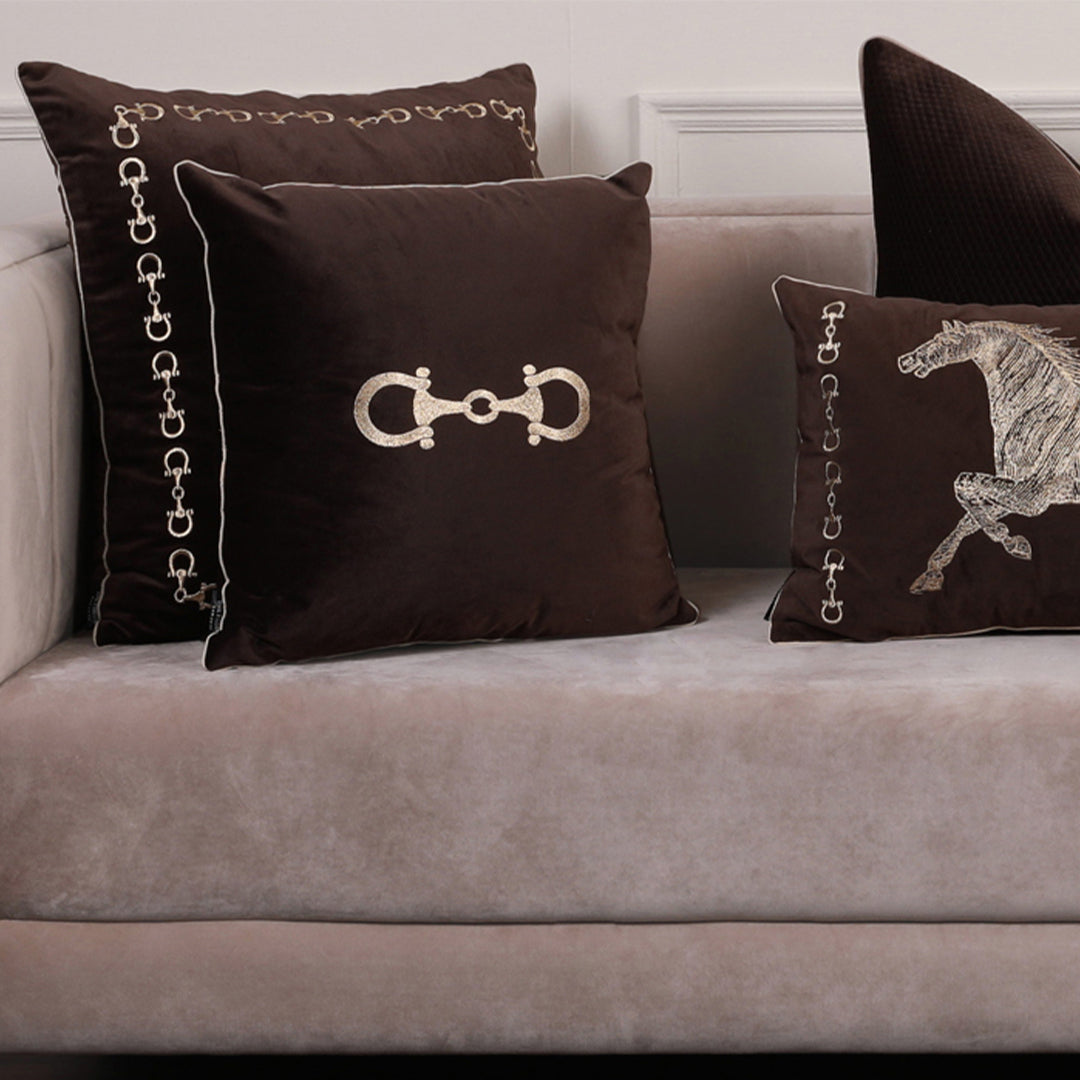 Introducing our Equestrian Large Snaffle Cushion Cover, a luxurious addition to your home decor. Crafted with gleaming metal accents and soft, comfortable fabric, this stylish Cushion cover is perfect for adding a touch of equestrian elegance to any room. Fabric - Velvet Dry Clean Only Filler not Included Exclusive to The Pillow Company Please note that colours on the actual product may vary slightly.
