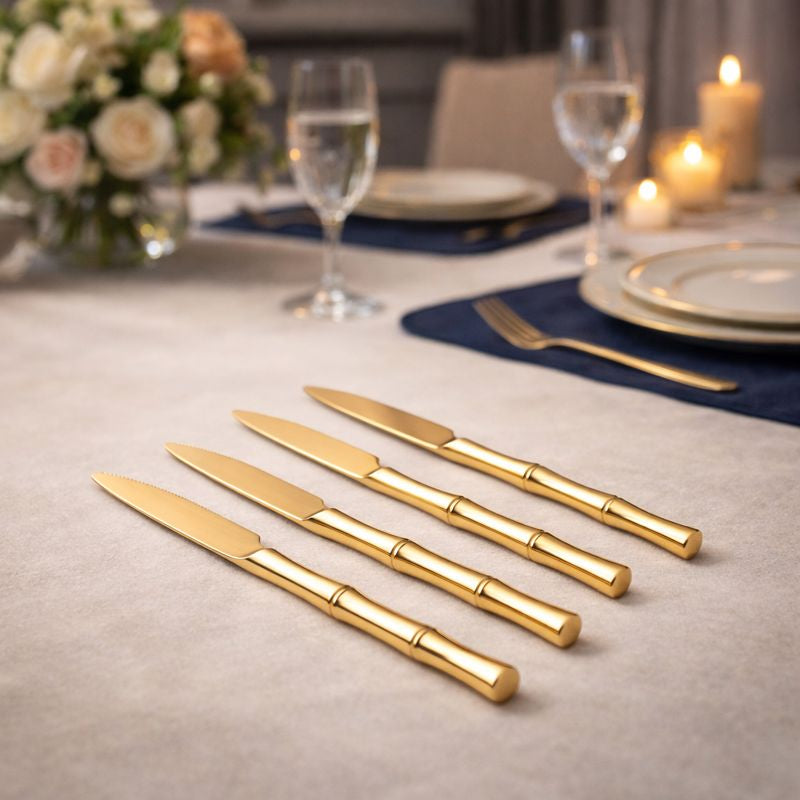 Luxe Gold Bamboo Table Knife , Set of 4