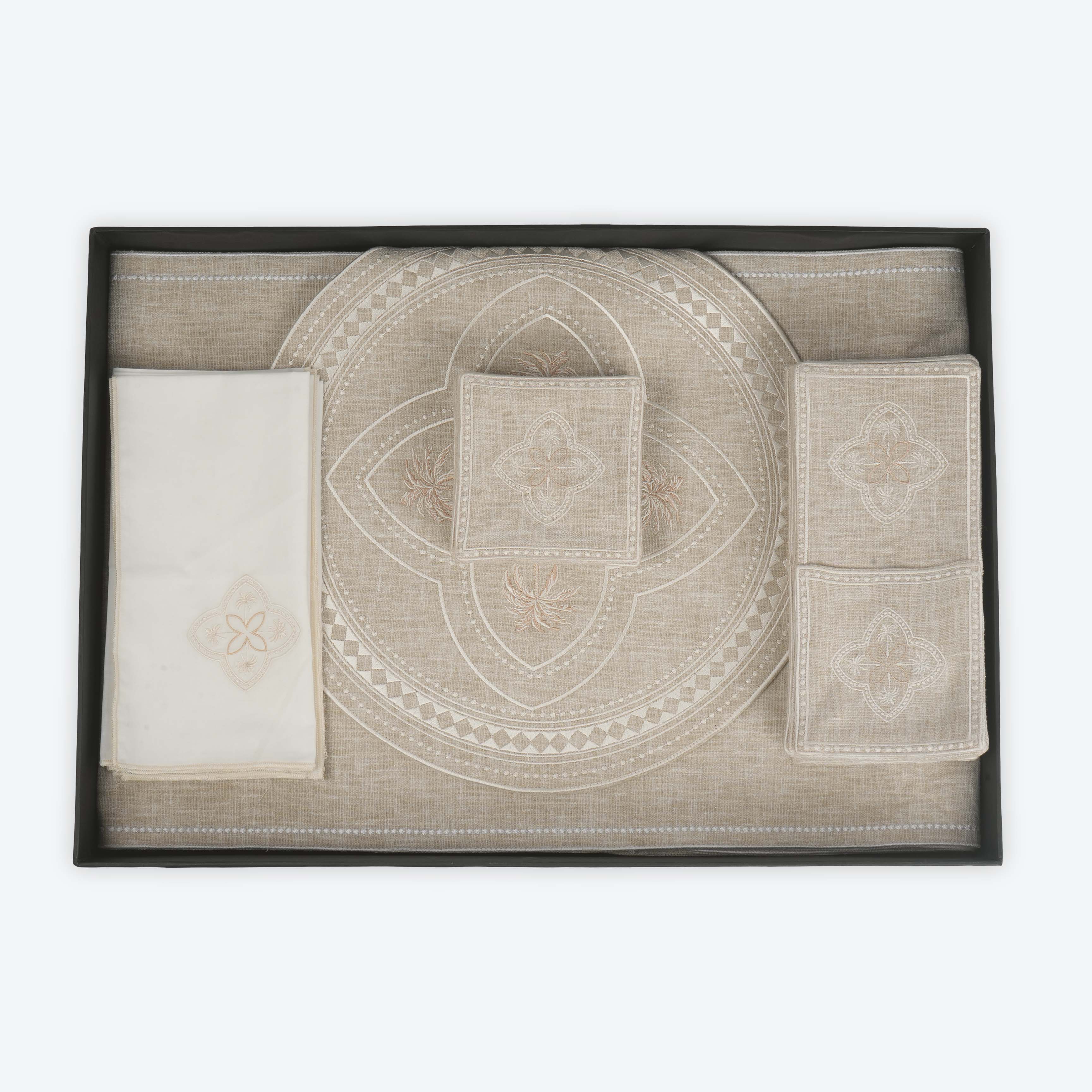 Designed for those who entertain with intention, each component is made to layer seamlessly — from the precision of our coasters to the refinement of our napkins and holders. Together, they form a harmonious whole: a table that speaks before the meal begins.