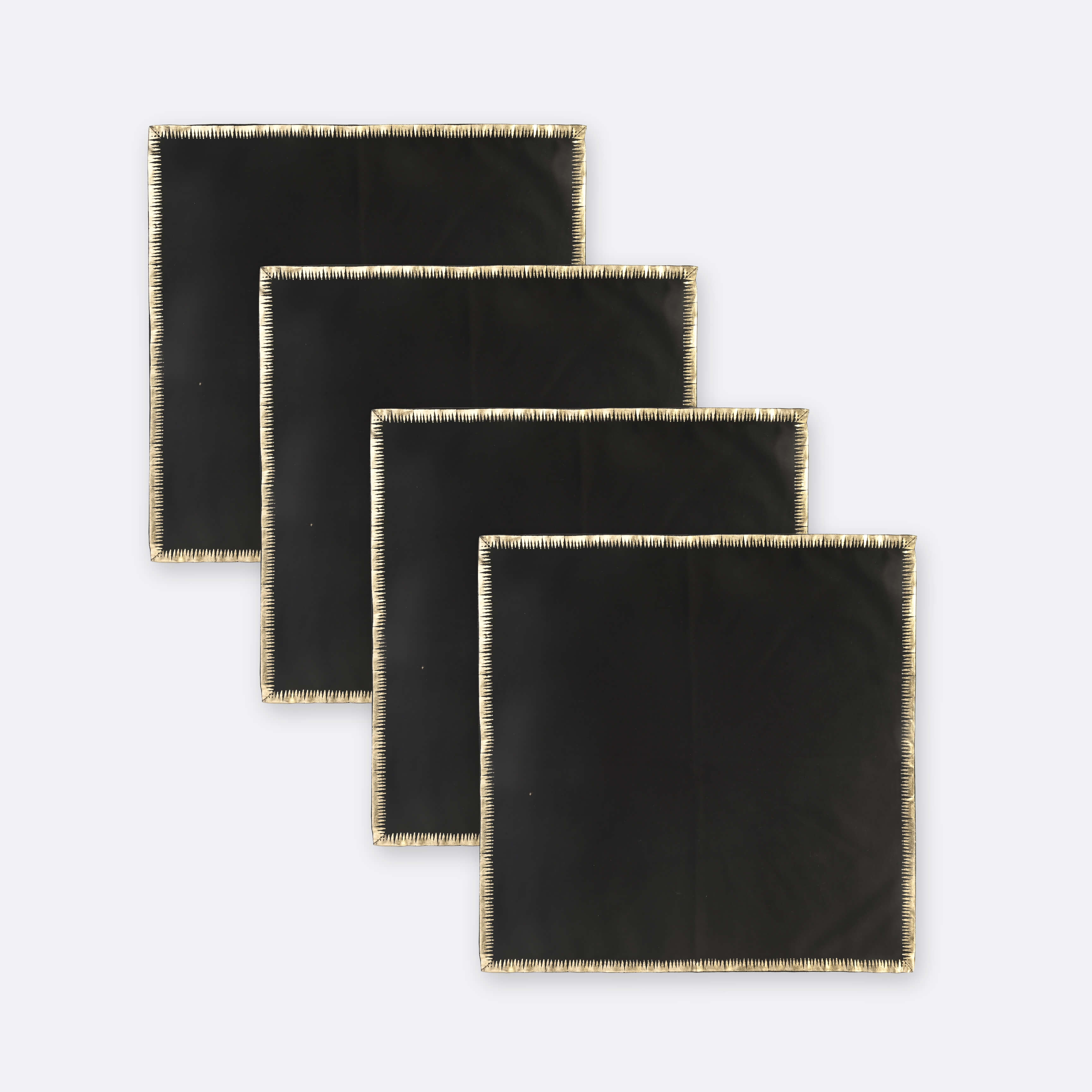 The Black Alba Napkin blends simplicity and sophistication with its deep onyx tone and metallic Print detailing along the edges. Designed for modern tables that favor minimalism with a touch of shine, these napkins effortlessly transition from everyday chic to formal elegance.