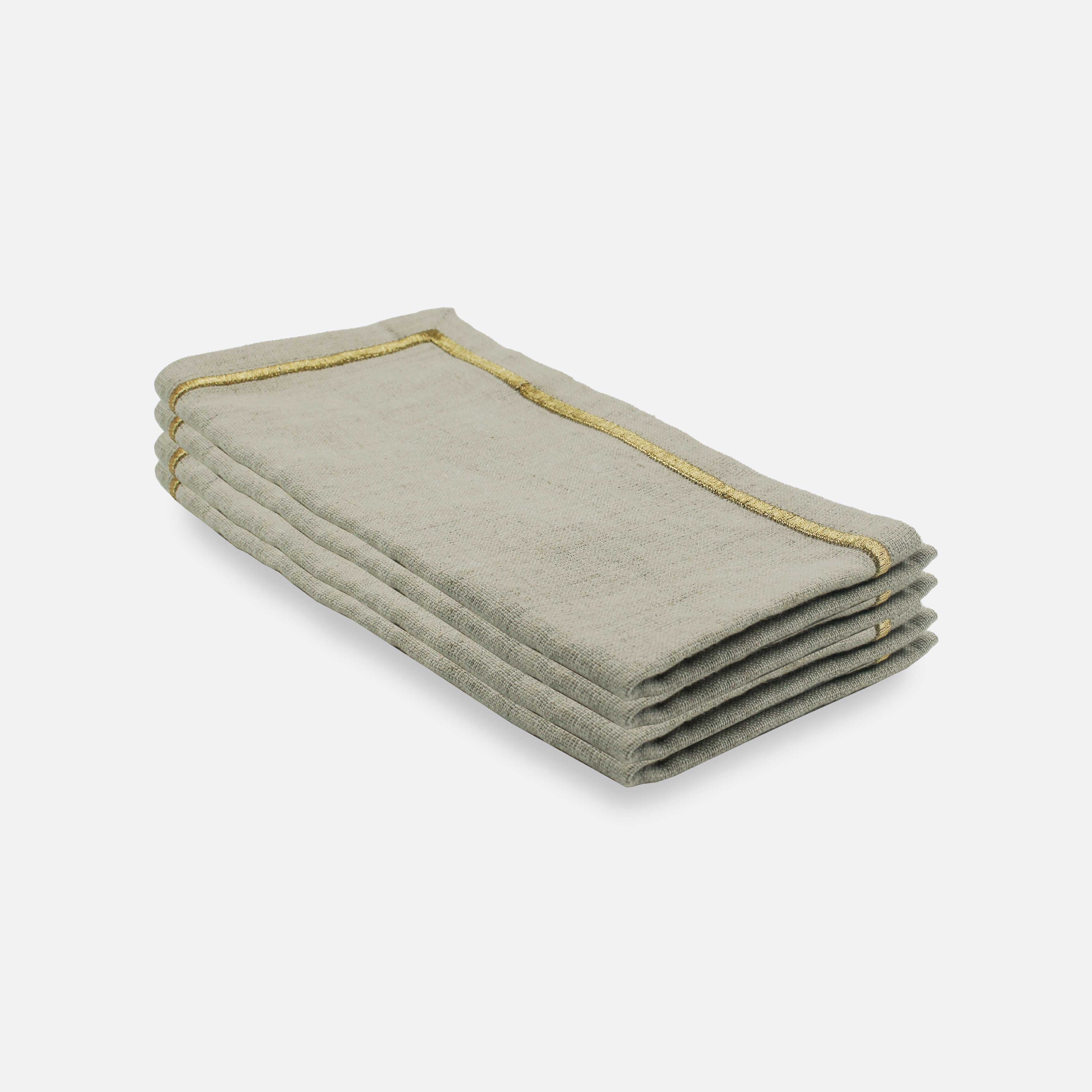 Refined and distinctive, the Beige Opulia Napkin Set features an olive-hued linen blend with gold edge detailing. A sophisticated twist on simplicity that complements any neutral palette beautifully.