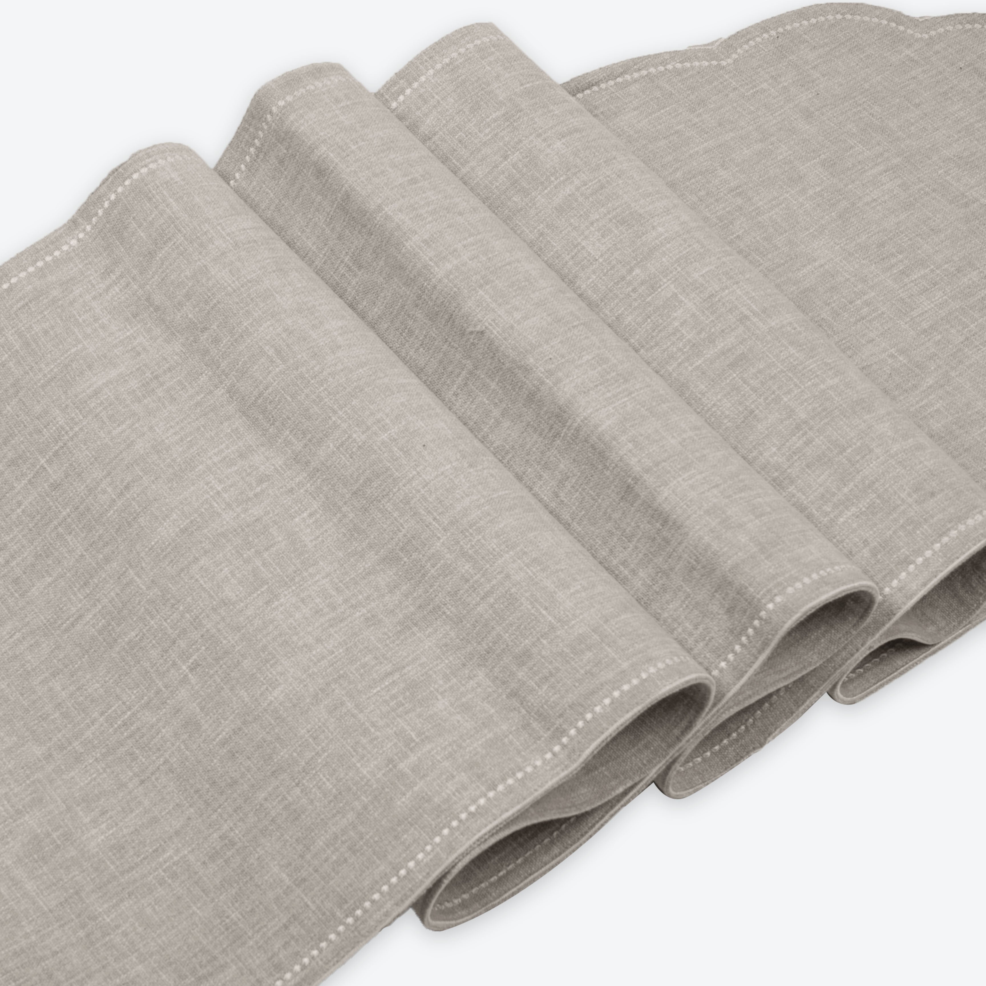 The Beige Meadow Table Runner pairs simplicity with movement — the scalloped edges soften its structure, making it ideal for both intimate and formal settings.