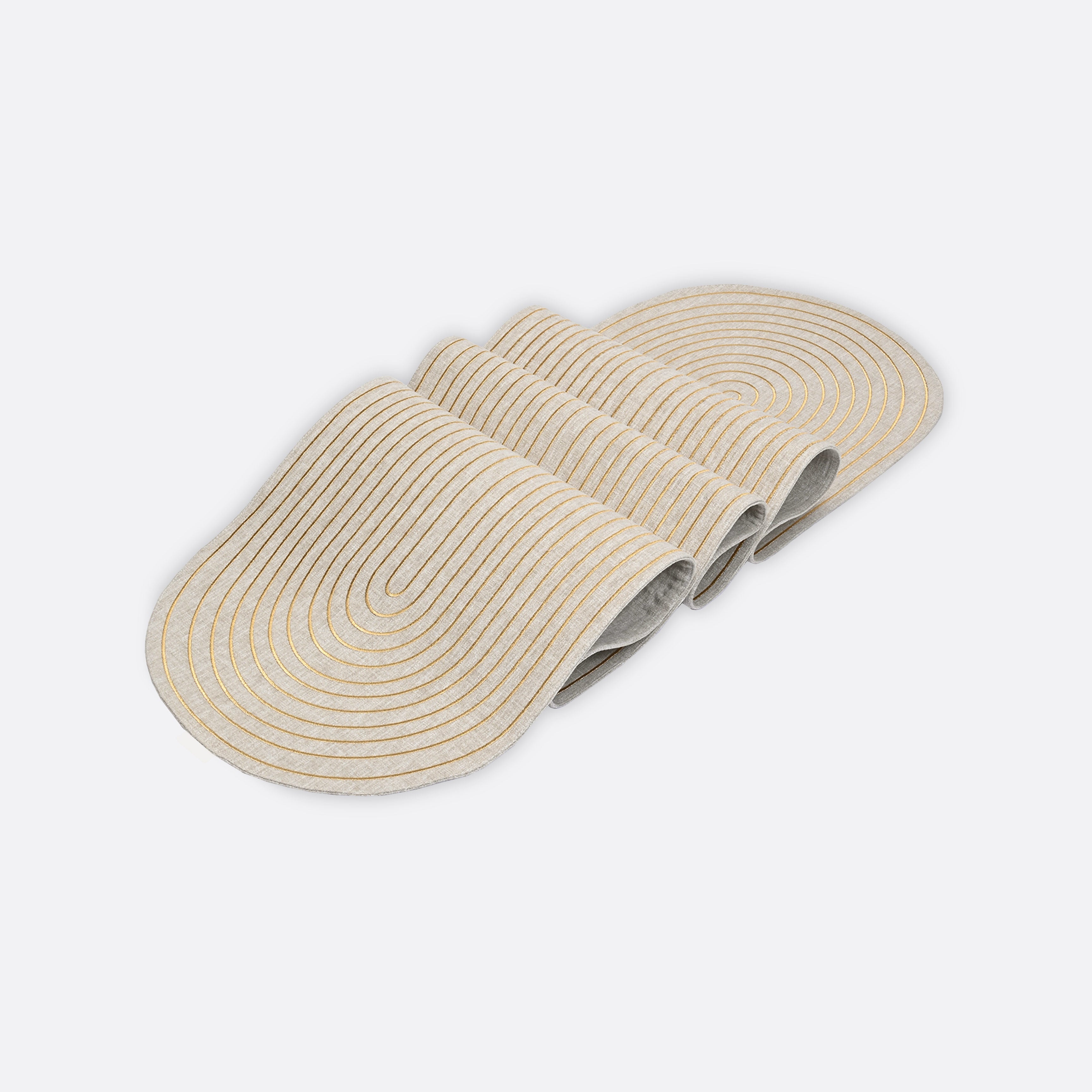 Understated and sculptural, the Beige Arch Table Runner features concentric stitched lines on a linen-blend base — designed to complement both neutral and metallic tablescapes.