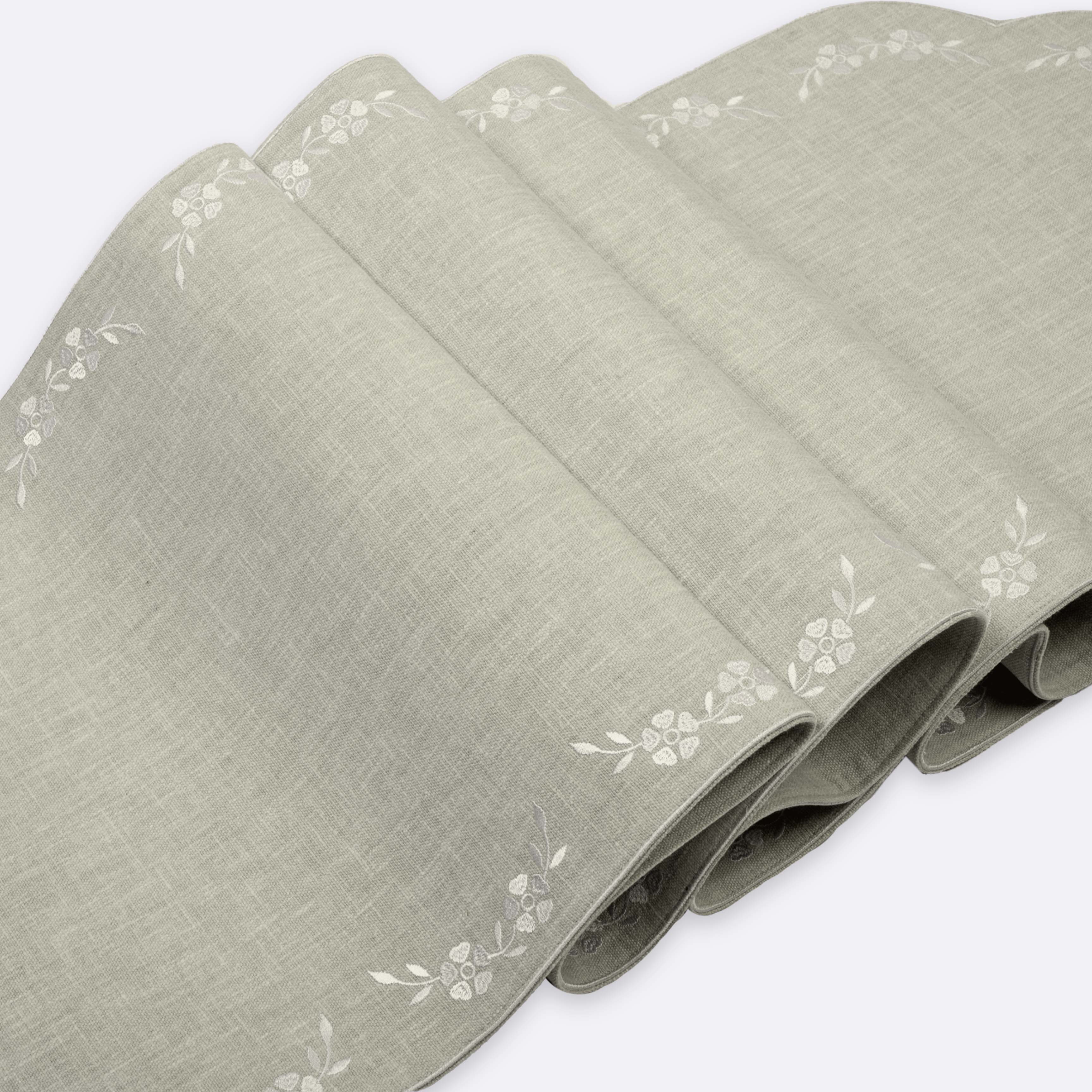 A continuation of the Serra Bloom series, this Table Runner features delicate white embroidery on a soothing sage linen blend. Balanced, soft, and perfect for transitional décor.