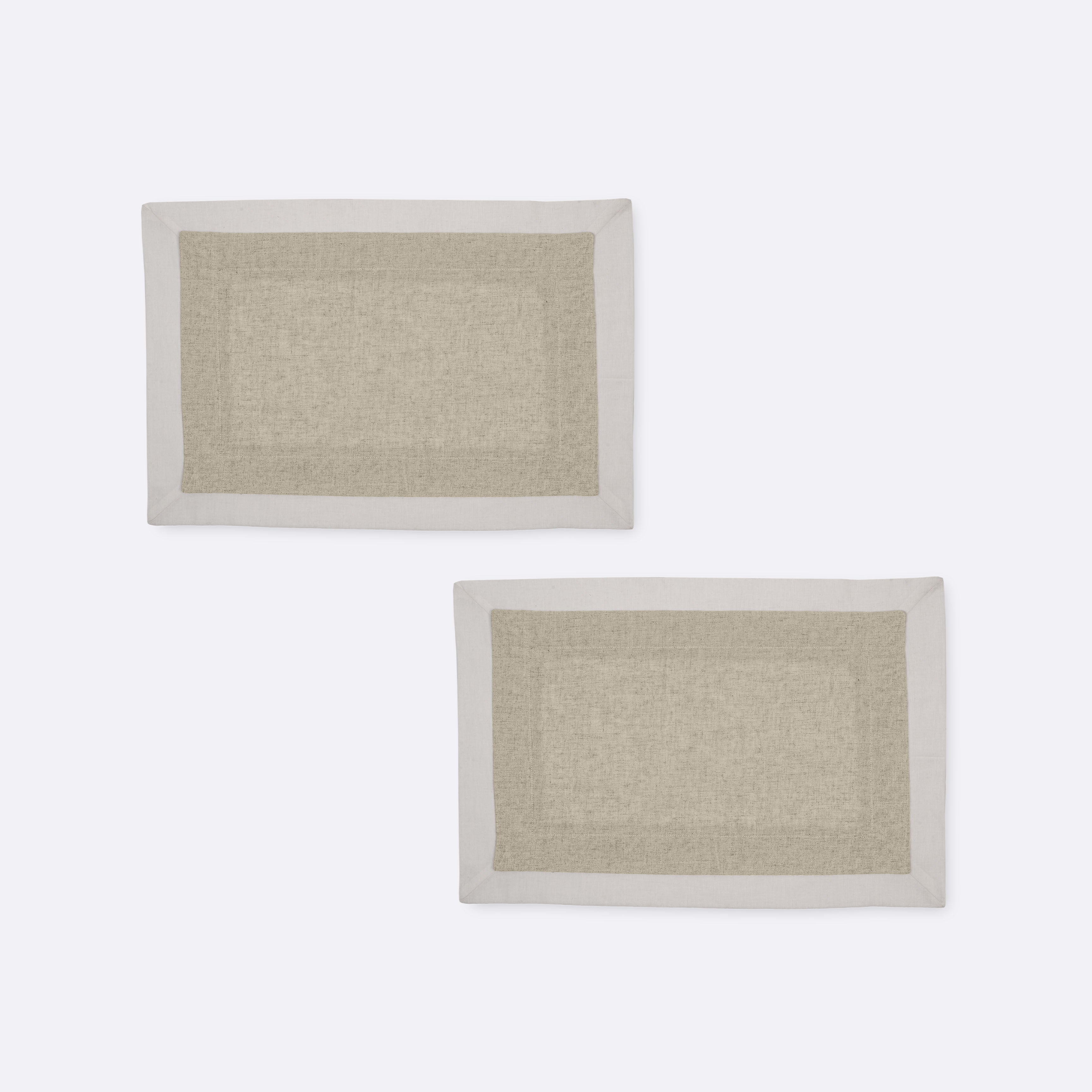 A masterclass in understated luxury, the Maison Duo Placemats feature a two-tone linen blend design — layered with natural and ivory panels that create a calm, architectural look. The double-fabric construction gives them beautiful weight and structure, ideal for sophisticated dining setups.